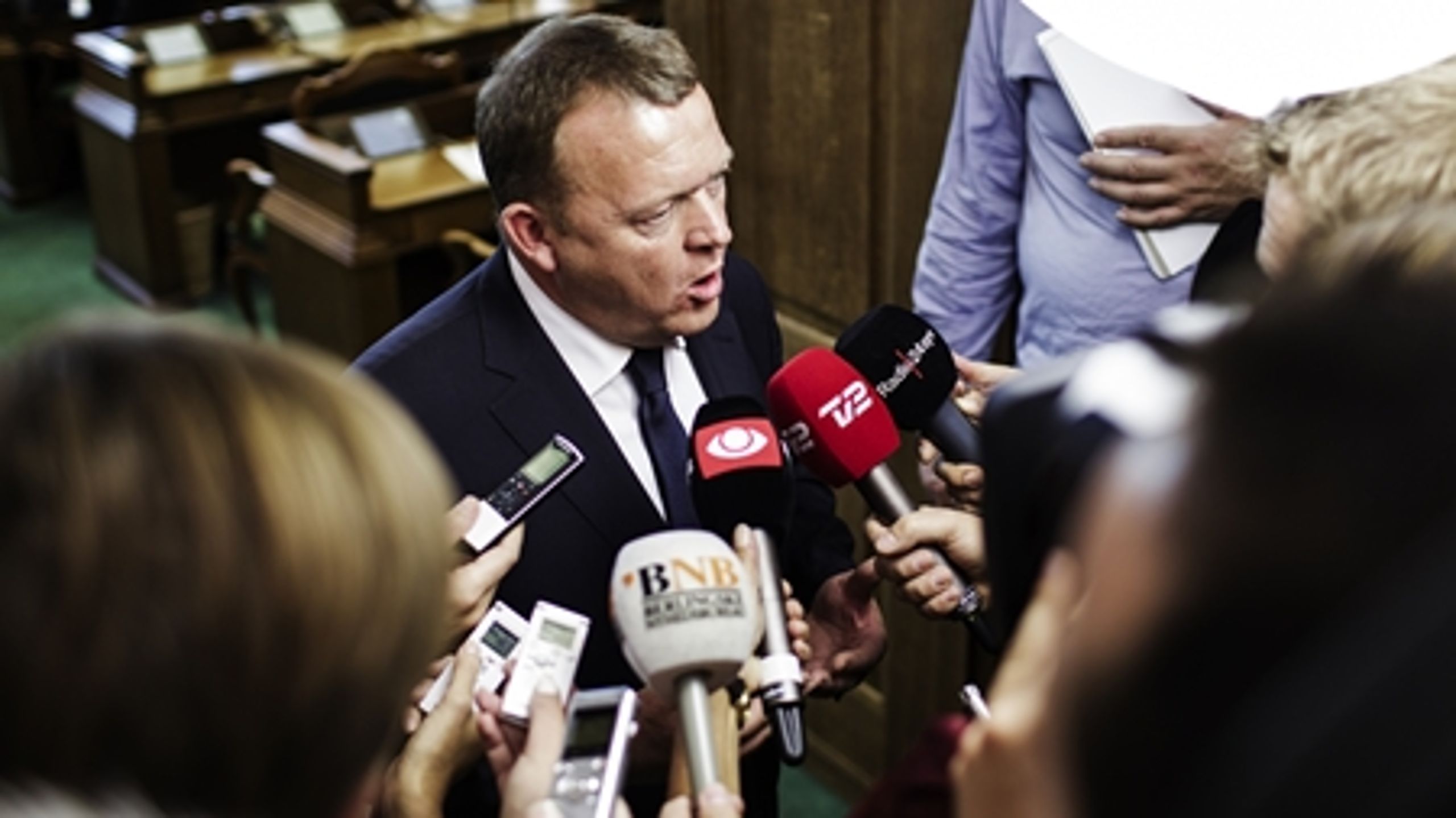 Venstres statsministerkandidat er kommet i alvorligt stormvejr som følge af sine tøjkøb og ferierejser til familien på partikassens regning. Men trods Lars Løkkes problemer, så har blå blok fortsat et solidt forspring i meningsmålingerne på 55,8 pct.