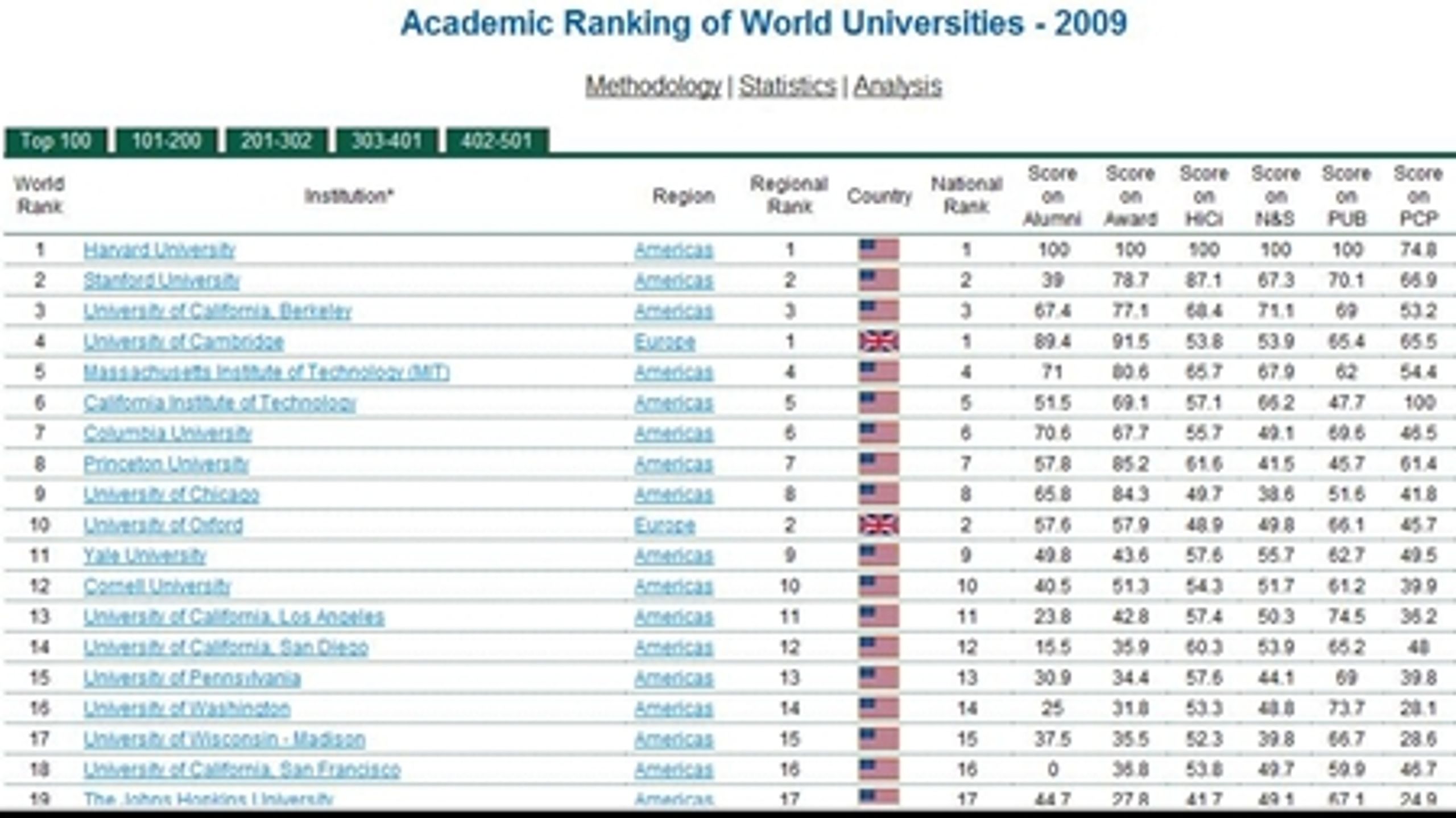 Og ser man på en anden anerkendt rangliste, den kinesiske Academic Ranking of World Universities fra Shanghai Jiao Tong University, har der i løbet af de seneste seks år kun været to europæiske universiteter i top 20". Det var de kendte britiske universiteter i Oxford og Cambridge. Til sammenligning har der været 17 amerikanske.