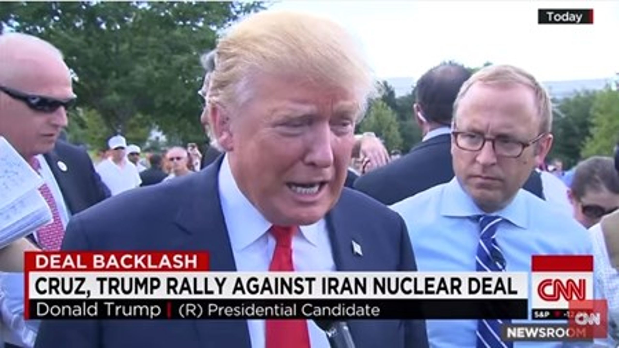 Protesten gjaldt den aftale om det iranske atomprogram, der er indgået mellem de fem permanente medlemmer af FN's Sikkerhedsråd, herunder USA, samt Tyskland; en aftale, som i øjeblikket behandles i den amerikanske kongres.