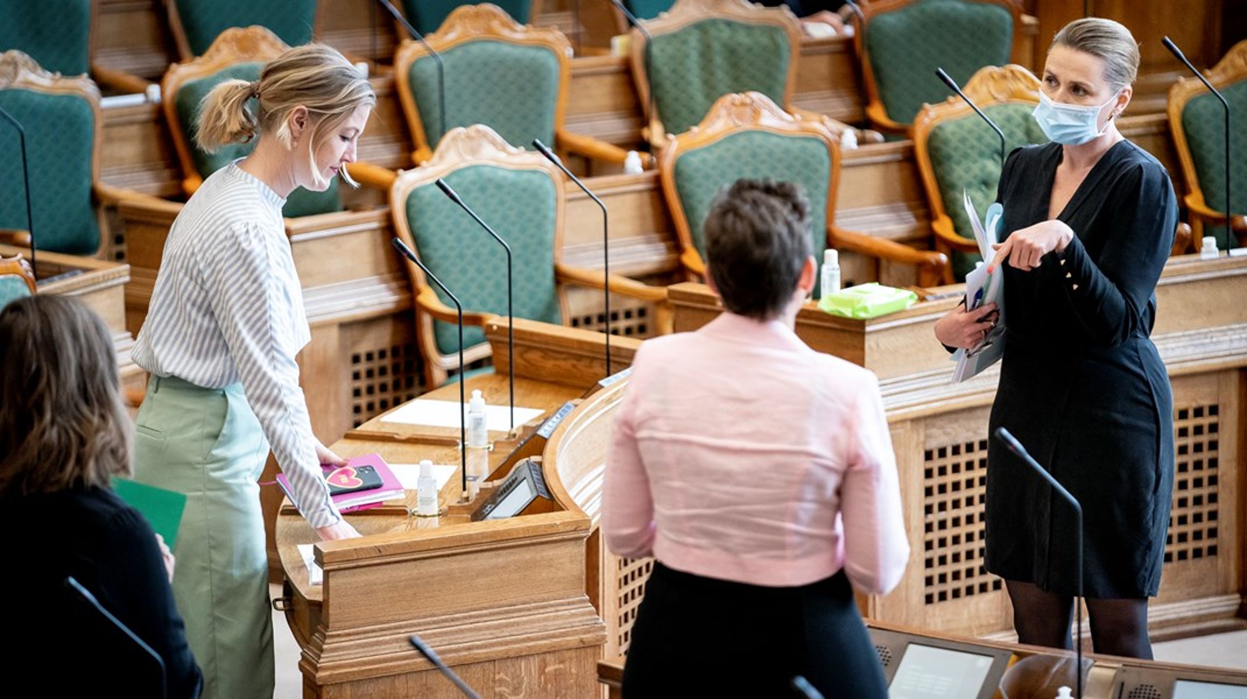 Statsminister Mette Frederiksen, SF-formand Pia Olsen Dyhr, Radikales politiske leder Sofie Carsten Nielsen og Enhedslistens politiske ordfører Mai Villadsen fortæller i et fællesinterview, at der er behov for regulering af blandt andet Facebook og Google.