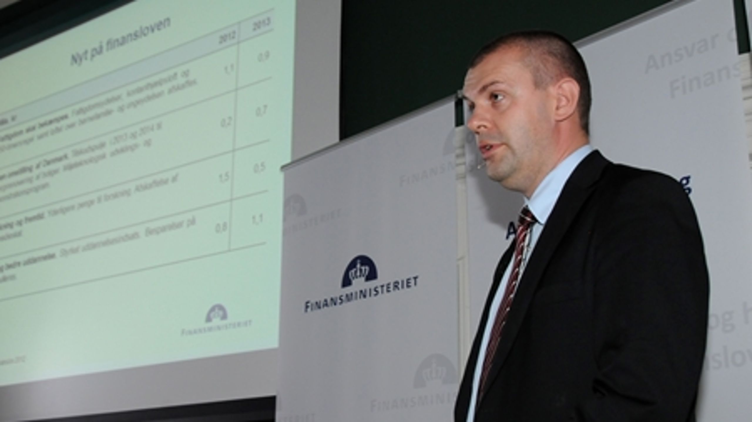 Finansminister Bjarne Corydon (S) fremlagde tirsdag formiddag regeringens forslag til en finanslov for 2014.