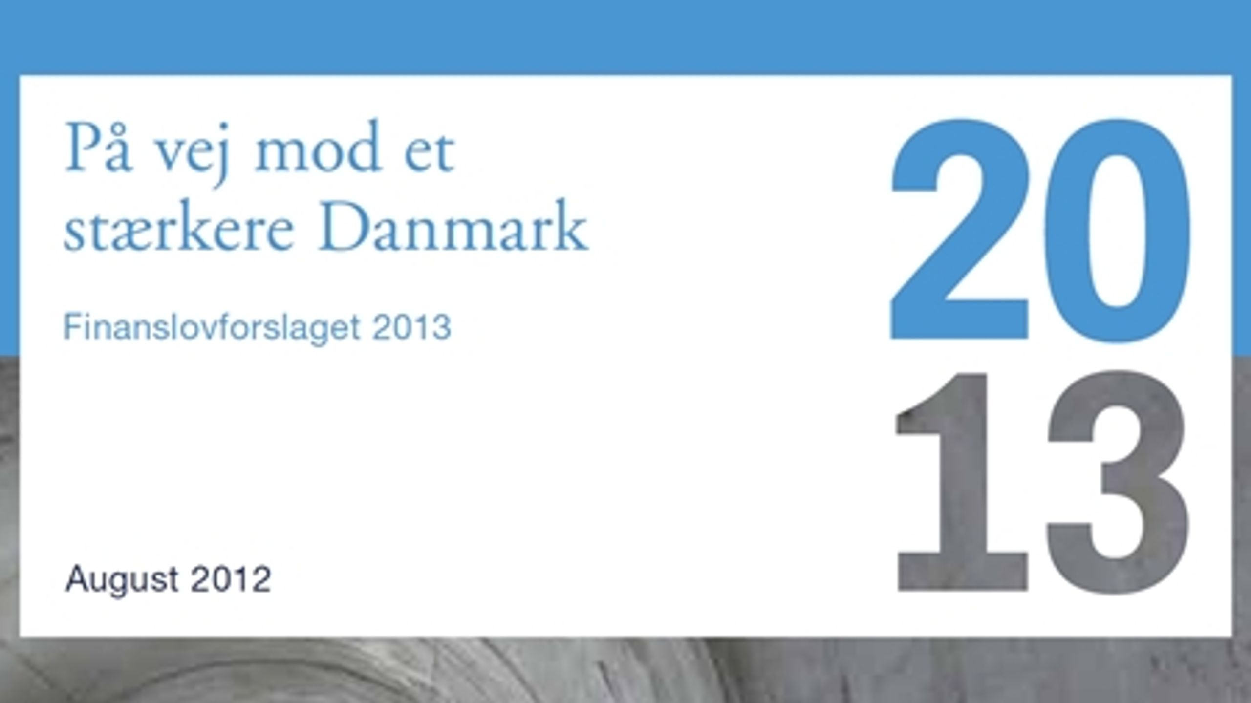 I regeringens netop offentliggjorte finanslovforslag for 2013 udpeges følgende hovedelementer: