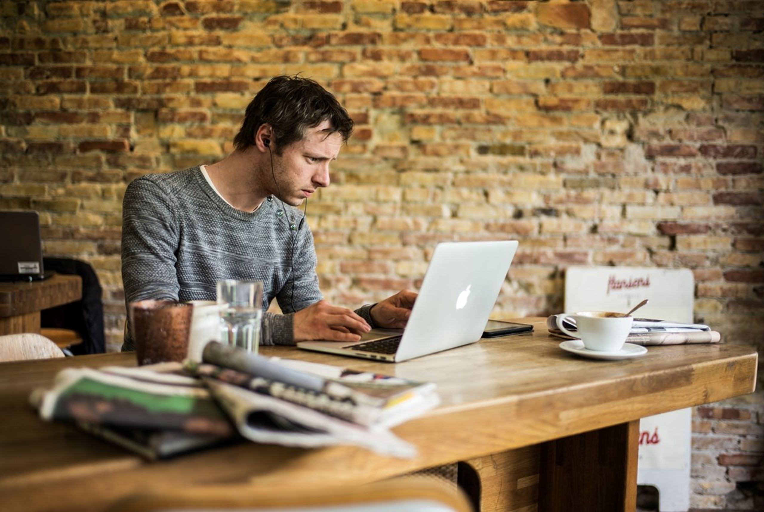En espressobar, som typografien på facaden fortæller, for kaffebarer er der jo så mange af på Vesterbro. Her mødes gæsterne morgen, middag og aften af det ikoniske Apple-logo fra arbejdspladserne ved vinduet.
