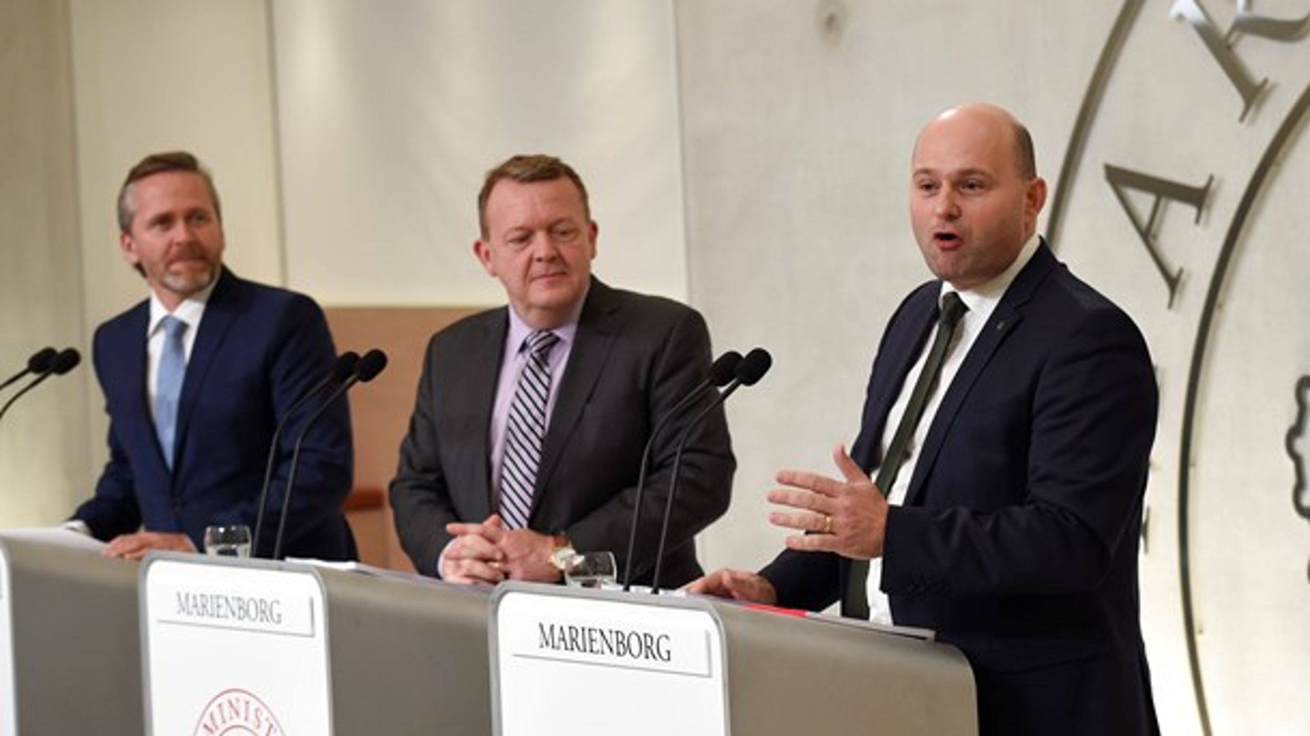 Statsminister Lars Løkke Rasmussen (V) præsenterer sin nye regeringen for dronningen mandag kl 11.00.